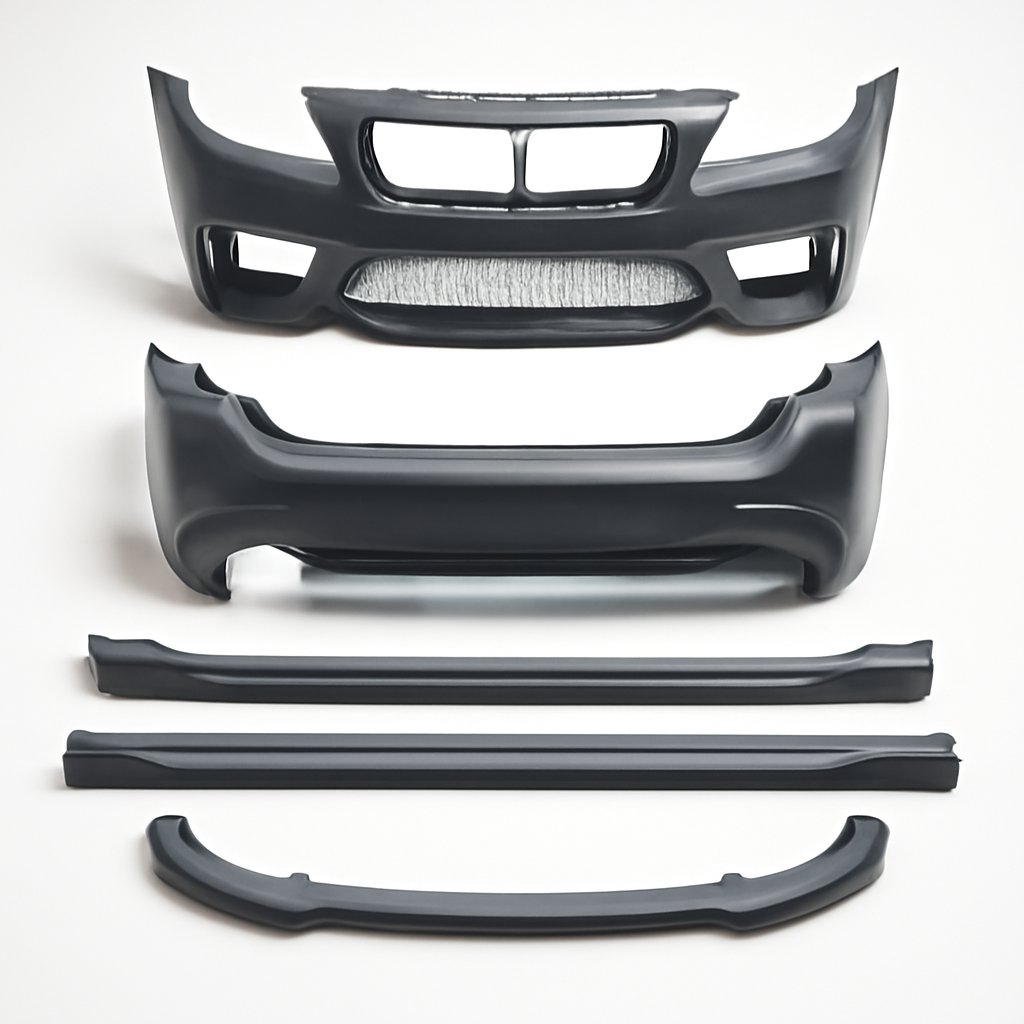 The body kit typically includes front and rear bumpers, side skirts, and a rear spoiler.
